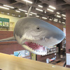 建物に入るとすぐの中空に大きく口を開けたジョーズさながらの巨大サメが浮いています!