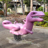 大きな団地の建物に挟まれた児童公園に、おなじみのベロキラプトル型のスプリング遊具がいます。砂原児童遊園の恐竜像に会いに行ってみました!