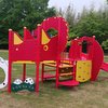 職人さんが手作りしたレトロな滑り台など、昭和な感じの住宅地の中の公園。ここにあの紫色のベロキラプトルのスプリング遊具が1台あります。