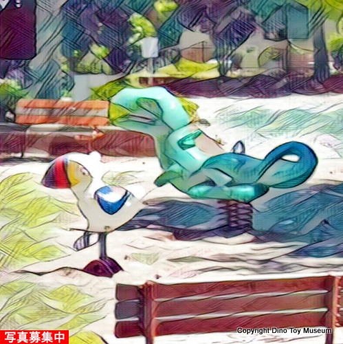 ■ 恐竜像:恐竜型のジャングルジム(トリケラトプスとステゴサウルス?)