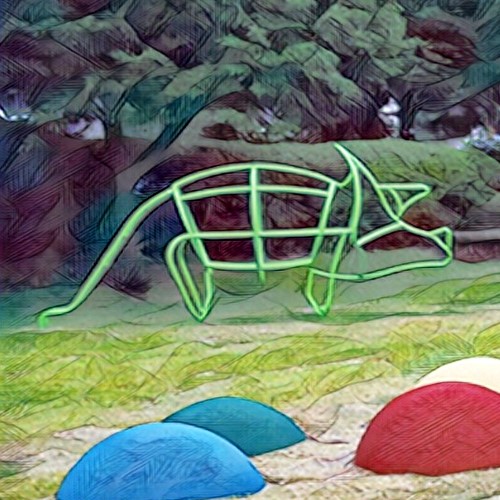 ◆ 恐竜型のジャングルジムがいます。トリケラトプスとステゴサウルスかな?(2022/12/21)