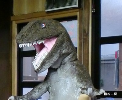 こんにちは 糟谷工房です。 まずアロサウルスのパペットです。高さ40センチで上半身のみ。芯はスポンジ製で内 側布貼り、表面コーキング用シリコンシーラント製、歯は栗の木製です。 ![]() アロサウルスのパペット ![]() アロサウルスのパペット そしてT・レックス指人形の新しい見本です。 ![]() 7/11から地元のイベントが始まり、この日は有料の指人形製作教室を小1〜4までの 男女が5名受講してくださいました。 この教室はずっとやっていますので奮ってご参加ください。 |