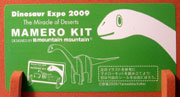 ![]() 2009年の夏、幕張メッセで開催された大恐竜展「砂漠の奇跡」の会場で手に入ったマメンキサウルスのキャラクター:マメローの組み立ておもちゃです。定価は900円でしたが、館長が見に行った時はキャンペーン期間中で、会場内の「ディノショップ」(お土産コーナー)で3,000円以上買ったら毎日先着100名様に、会場限定「マメロー工作キット」をプレゼント!!となっていて、会場についたとたんに公式カタログやフィギュアを買ったからもらえちゃいました。目の細かなスポンジ素材でできていて、体と手足を組み合わせると完成です。 一緒に写っているのはスタッフの智ちゃん。手に10センチの棒を持ってます。 問題:マメンキサウルスはどこに住んでいた恐竜でしょうか? 前の展示室の問題の答え:空気が通る管。内部の表面積を増やし嗅覚を発達、内部で声を反響させ大声をにした、などの説がある。