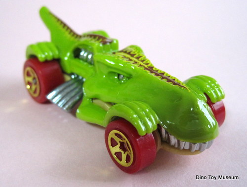 ![]() マテルのダイキャスト製ミニカー ホットウィールのTレックス・トロイヤー(T-REXTROYER)。ホットウィールはオレンジ色のコースにミニカーを走らせて遊ぶおもちゃで、1968年の発売開始以来、全世界で人気のおもちゃだそうです。急な坂やカーブ、1回転などを、滑らかに猛スピードでミニカーが走り抜けるのが楽しいおもちゃで、館長も子どもの頃、はまっていました。いろいろな種類の車があり、ベーシックなレースカーからキャラクターものまで、毎年新作も発売され、コレクターも多いですね。おもちゃは、ヤフオクで見つけた恐竜もの。緑色のボディーがティラノサウルスのイメージ。低く伏せた姿勢のティラノサウルスレーサーが、猛スピードで走り回る! ![]() 展示室18号室の8でステゴサウルスのホットウィール「スピードAザウルス」も紹介してます! |