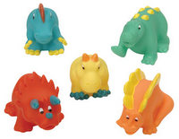 ![]() バタット社のおもちゃを初めてゲット!ヤフオクで見つけた柔らかなゴム素材のお風呂で遊ぶおもちゃ、水鉄砲になっているようです。ヤフオクで買った2点に刻印されていた「BATTAT」という文字で検索したら、バタット(BATTAT)という北アメリカで操業114年という玩具メーカーのホームページにたどり着き、カタログの中にディノ・バス・バディー(Dino Bath Buddies)というお風呂で小さな子どもが遊ぶ5個セットのおもちゃの2つということが分かりました。5個のうち、恐竜名がわかりやすいのは、トリケラトプスとステゴサウルスの2種類で、残り3種類は「なんちゃって恐竜」なので、とりあえず3本指のアメリカの肉食恐竜ということでアロサウルスにしました。 |